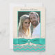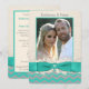 This gorgeous, modern and rustic monogrammed country wedding invitation with a photo template, in colours of aqua blue-green, grey, and ivory chevron stripes pattern has a PRINTED ivory floral lace band below a turquoise blue PRINTED satin look ribbon and bow on a FAUX cream coloured burlap sack or linen look background. All the text is customisable so you can change to suit your occasion or special event. It's perfect for a casual or informal rustic country spring, summer, autumn, or winter wedding. The invitation is shown here on basic paper with rounded corners, but it would look lovely on recycled, linen, felt, or metallic paper in. If you want a nice heavyweight textured feel, choose felt paper in bright. ****PLEASE NOTE that everything will print as it appears on your monitor, so if you have typos, alignment, or sizing issues, please contact me for help BEFORE you order. I can't help with anything once the order has been placed with Zazzle. If you need any other matching items, or of you want it in another colour combination, please email niteowlstudio@gmail.com.