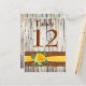 If you are having a rustic country wedding, and if beautiful yellow roses will be your primary flowers, then why not carry the look right over onto your wedding invitations and other assorted stationery? This truly gorgeous shabby chic, rustic wood grain, old barn wood look wedding table number post card has a PRINTED burlap strip with a PRINTED yellow satin ribbon on it that matches the wedding invitation shown below. There is a yellow rose with green leaves atop the ribbon. Perfect for your casual or informal rustic country spring, summer, fall, or winter wedding reception. ****You MUST change the number 12 to each number that you need, add it to your cart, then return and repeat the process for all the numbers you need.****PLEASE NOTE that everything will print as it appears on your monitor, so if you have typos, alignment, or sizing issues, please contact me for help BEFORE you order. I can't help with anything once the order has been placed with Zazzle. If you would like a different flower or colour combination, or if you need any other matching items, please email niteowlstudio@gmail.com.