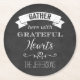 These round personalised THICK disposable or reusable paper coasters have a black and white FAUX chalkboard look background with a white ribbon banner, a pair of scrolls and a white heart on it, along with the verse: Gather here with grateful hearts, which would make it a wonderful item to have at your Thanksgiving feast, Christmas dinner, or any event where friends and family gather. Add your family name, business name, seasonal greeting, or other text. Makes a modern and trendy hostess or house-warming party gift for the young hipsters too! If you need assistance, email niteowlstudio@gmail.com.