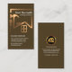 A faux copper building roof frame that has a hammer and screwdriver accentuates the top portion of the card. It acts as a frame to your prestigious name and job title. At the base are the business name, contact details and a slogan caption to publicise your services. You can change the caption to suit your service needs.