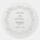 Elegant round wedding sticker featuring refined faux embossed floral detailing printed on a faux cotton pressed paper texture background. Text editable via Template Objects for sealing envelopes, favors, and gift packaging.