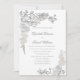 A stunning floral frame with peonies as the centre pieces, with filler wedding flowers and foliage such as eucalyptus, stock flowers, ferns, veronica flowers and more, hand-drawn in ink and layered with a faux-embossed effect, decorates this elegant and sophisticated formal wedding invitation template that features elegant calligraphy with delicate flourishes for the names. The black and white design with a very delicate champagne and gold inspired accents, perfectly accompanies a formal, elegant affair and integrates with many colour schemes. This art wedding invitation is a lovely choice for couples who love fine art, art designs, unique and original art and formal, traditional wedding designs. Customise each line of text. Matching items available.