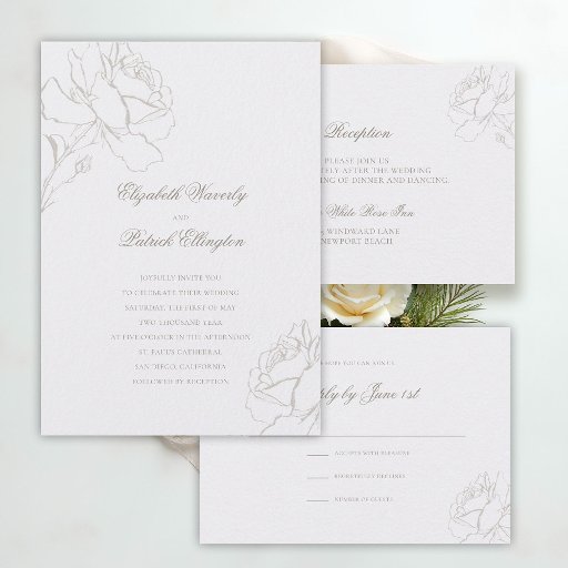 A faux-embossed sketch of a delicate rose decorates this floral themed, modern classic wedding thank you card design that is simple but sophisticated, timeless and elegant. Please note that the embossing is created through an image and no actual embossing will appear on the card. This modern classic faux embossed wedding thank you is perfect for couples who prefer formal traditional wedding stationery design and who love the embossed effect, floral themes, roses in particular and classic wedding calligraphy.