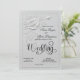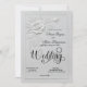 About the Design: This design simulates the tactile look of traditional blind embossing through a high-quality digital print (faux effect). The background is a clean, monochromatic white, featuring a sophisticated, sculpted 3D rose motif in soft shades of light gray and stone to create the illusion of depth, shadow, and raised relief. An intricate, faux beaded rectangular border frames the layout. The text is centered, utilizing a formal black ornamental calligraphy script for the couple's names, paired with a traditional serif font for the ceremony details. The overall aesthetic is crisp and architectural, mimicking the appearance of carved plaster or heavy cardstock relief.