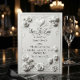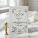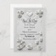 Set the tone for a formal spring celebration with this timeless design featuring a sculpted floral look. A luxurious aesthetic for the classic romantic bride.This design features a sophisticated monochromatic palette of soft white and warm ivory. The artwork simulates a high-end sculpted relief, depicting lush roses and tulip buds interwoven with ornamental scrollwork and curved flourishes. A decorative rectangular frame encloses the text, which pairs romantic calligraphy script with traditional serif typography for a formal appearance.This is a flat printed image with a Faux Embossed effect, not actual raised material.