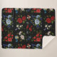Faux Embroidered Red & Blue Flowers Sherpa Blanket