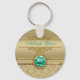 Faux Emerald Gemstone Metallic Shiny Gold Damask Key Ring