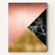 Modern spiral notebook, with graphics of faux rose gold, gold metallic and black marble done in an abstract geometric design. Personalise the name to read what you want.