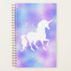 Faux Foil Personalised White Unicorn Silhouette Planner. Background is pretty faux foil look of light purple and blue. Pretty unicorn silhoutte in white. www.SamAnnDesigns.com