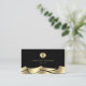 faux foil waves golden seashell on black business card