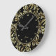 Faux Glitter And Gold Lace On Black Background Large Clock