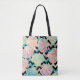 This elegant tote bag for her features faux glitter, colourful seashells in multiple colours of teal, pink, aqua, and lime green. The shells are placed on aqua blue chevron stripes that also contain images of the shell pattern, and those are contrasted with dramatic black chevron stripes. Pretty for the beach or anywhere!