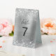 Faux Glittery Silver Foil Wedding Table Number