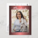 Unique and trendy congratulations graduate announcement and celebration party invitation card, with a classic faux shiny dark burgundy wine red ombre gradient coloured background. With room to customise or personalise with a photo, the name of the graduate, class graduation year, high school, future college or university name, and celebration party event information. Let the family, friends and neighbours know there is a happy graduate ready to conquer the world, and invite everybody to come celebrate the happy event with you!