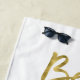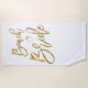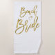 Beach towel with faux gold Beach Bride text (look like, imitation) and ring printed on white background