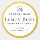 Elegant product label with a faux (printed image) gold border and your custom logo. Fonts and font colors are customizable. Move and resize the logo with the design tool.