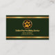 An exquisite emerald green cover is accentuated by two faux gold lines that border the upper and lower rims of the card. At the top lies a gold paw print logo you can use followed by your business name, your prestigious name and the job title near the base. Lettering are in faux gold.