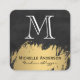 Faux Gold Brushed Monogram Lush Black Square Business Card