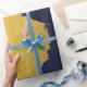 Faux Gold Brushstrokes with Navy Blue Background Wrapping Paper