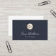 Elegant business cards for seamstresses, fashion designers, tailors, alterations, costume designers or dry cleaners feature a shirt button illustration in faux gold foil, on a rich navy blue background with two lines of custom text in white. Customise the back with your full contact details.