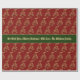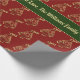 Christmas Tree Pattern Faux Gold Red Background Green Ribbon Design Elegant Christmas Gift Wrapping Paper with custom text "We Wish You A Merry Christmas! With Love, The Williams Family", you can change or delete the text