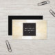 An array of cascading faux gold-hued confetti dots create an eye-catching design pattern on this stylish business card design. Set on a white background with a simple black box designed to hold your name or business name in a modern type treatment. © 1201AM CREATIVE