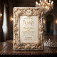 Set the tone for your formal spring ceremony with this luxurious, baroque-inspired design featuring elegant scrollwork and a romantic floral crest.