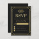 Chic faux gold foil art deco wedding RSVP cards. The elegant wedding RSVP cards feature a faux gold art deco border, dark grey background, and wedding monogram. Change the font style by clicking the "Customise It" button.