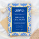 Faux Gold Foil Blue Damask Islamic Mehndi Ceremony Enclosure Card