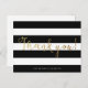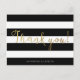 Personalised, modern, black and white striped 'thank you' note card (flat) featuring 'Thank you!' in faux gold foil calligraphy. PLEASE NOTE: The card mimics a foil effect, but is not actually foiled.