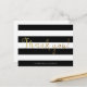 Faux Gold Foil Calligraphy | Black & White Stripes Postcard