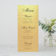 A faux gold foil menu that uses elegant calligraphic script for title and subtitles. All text is black. Recommended for a wedding with black and gold wedding colours, but it can be used on other occasions.