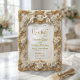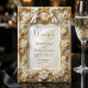 Set a tone of timeless luxury for your ceremony with this ornate design, featuring a printed gold relief effect and classic cherub details on soft cream.This design features a rich, symmetrical visual composition mimicking a high-relief gilded frame. The artwork displays two cherubic angels resting atop intricate scrollwork corners, connected by clusters of blooming roses in warm metallic tones. A central oval crest highlights the couple's monogram, set against a smooth ivory-colored background. The typography combines a romantic flowing script for names with a traditional serif font for details to ensure maximum legibility.This is a flat printed image with a faux embossed foil effect, not actual raised material or metallic leaf.