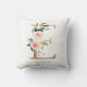Feminine and elegant floral monogram pillow featuring watercolor illustrations of blush pink flowers, greenery and faux foil monogram. Personalise by adding a name or short phrase. This monogram floral pillow will be perfect as a personalised gift.
