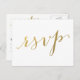 Faux Gold Foil Glamour | Wedding RSVP Postcard. Elke Clarke © Other colours available at www.zazzle.com/monogramgallery. A simple, yet versatile, handwritten script gold rsvp for weddings or other special occasions such as rehearsal dinners, couple's showers, wedding anniversary celebrations. Gold foil is a printed photo effect.