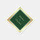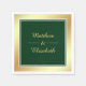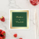 Elegant wedding paper napkins featuring an elegant faux gold foil border against a dark green background.