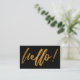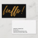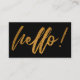 Faux Gold Foil Hello Handwriting Script on Black Business Card
