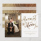 Faux Gold Foil MARRIED AND MERRY Script lettering with SNOWFLAKES and a faux gold foil border around your photo for this Holiday Photo card. Add three lines of text or you can click on "customize it" to add more text. Faux Gold Foil Stripes on the back of card. If you have any questions on the design layout please email paula@labellarue.com before placing and order so a new design can be created for you.