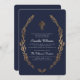 Composed of serif and cursive script typography. All against a backdrop of blue background with faux gold foliage.