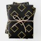 FAUX Gold Geometric Pattern with Monogram on BLACK Wrapping Paper Sheet