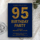 Amaze your guests with this glamourous 95th birthday party invitation featuring a bold golden glitter text against a blue background. Simply add your event details on this easy-to-use template to make it a one-of-a-kind invitation. Flip the card over to reveal a faux gold glitter texture on the back of the card.