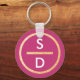 Faux Gold Glitter Circle Vertical Monogram on Pink Key Ring