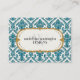 NOTE: This is a flat printed design. There is no actual glitter, gold metal or raised layers. COLOR PALETTE: glittery, shimmery turquoise teal blue, gold and soft white. DESIGN COLLECTION: Matching Business Cards, Card holders, and additional stationery items to match are perfect for personal use or professionals and businesses. Graphic design by Audrey Jeanne Roberts, this modern yet vintage style damask patterned image with a decorative floral design has a trendy faux glitter look. The frame is a scroll and dot pattern with an art nouveau or art deco influence. The damasks stylistically rendered flower elements are laid over a creamy white background colour. A bracket style frame has polka dots and a calligraphy swirl type border. There is a wide range of colour combinations available with this pattern.