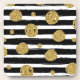 An elegant faux gold glitter polka dots on black and white striped background pattern.