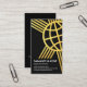 An all black cover is accentuated by a creative faux gold globe with connecting international lines, your supply chain, your import export connections etc. Near the base of the card lies your prestigious name, job title and the contact details.