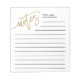 This modern and stylish black and white personalised notepad features trendy faux gold handwritten script that says "notes."