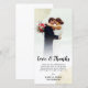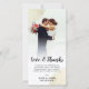 Photo card personalised with your own wedding photo. Love & Thanks written in a gorgeous black script above a personal message to your wedding guests. The edge between wedding photo and text is softened with a white gradient. Mandala-like lace is printed in faux gold in two corners. Add your names too!