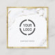 Modern trendy marbled background with faux gold foil bold border and details, custom with your own company logo and text, simple and stylish, professional square business card with logo.