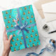 Faux Gold Merry Christmas Tree Pattern Turquoise Wrapping Paper