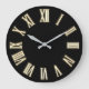 Faux Gold Metallic Minimal Roman Numbers Black Large Clock